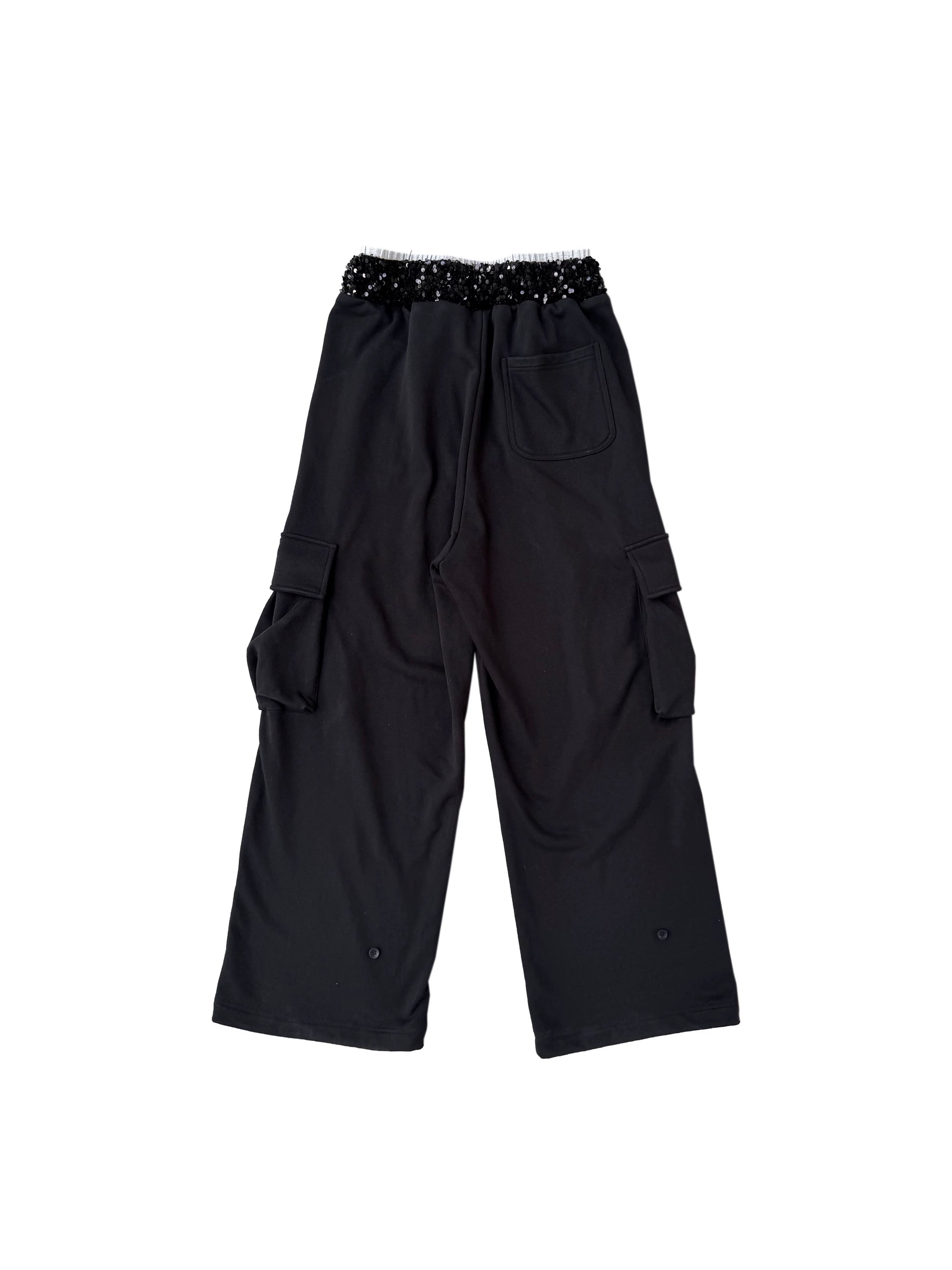CHAI SS26 ヘラルディックプリント カーゴスウェットパンツ - スパンコールウエスト マルチポケットジョガー