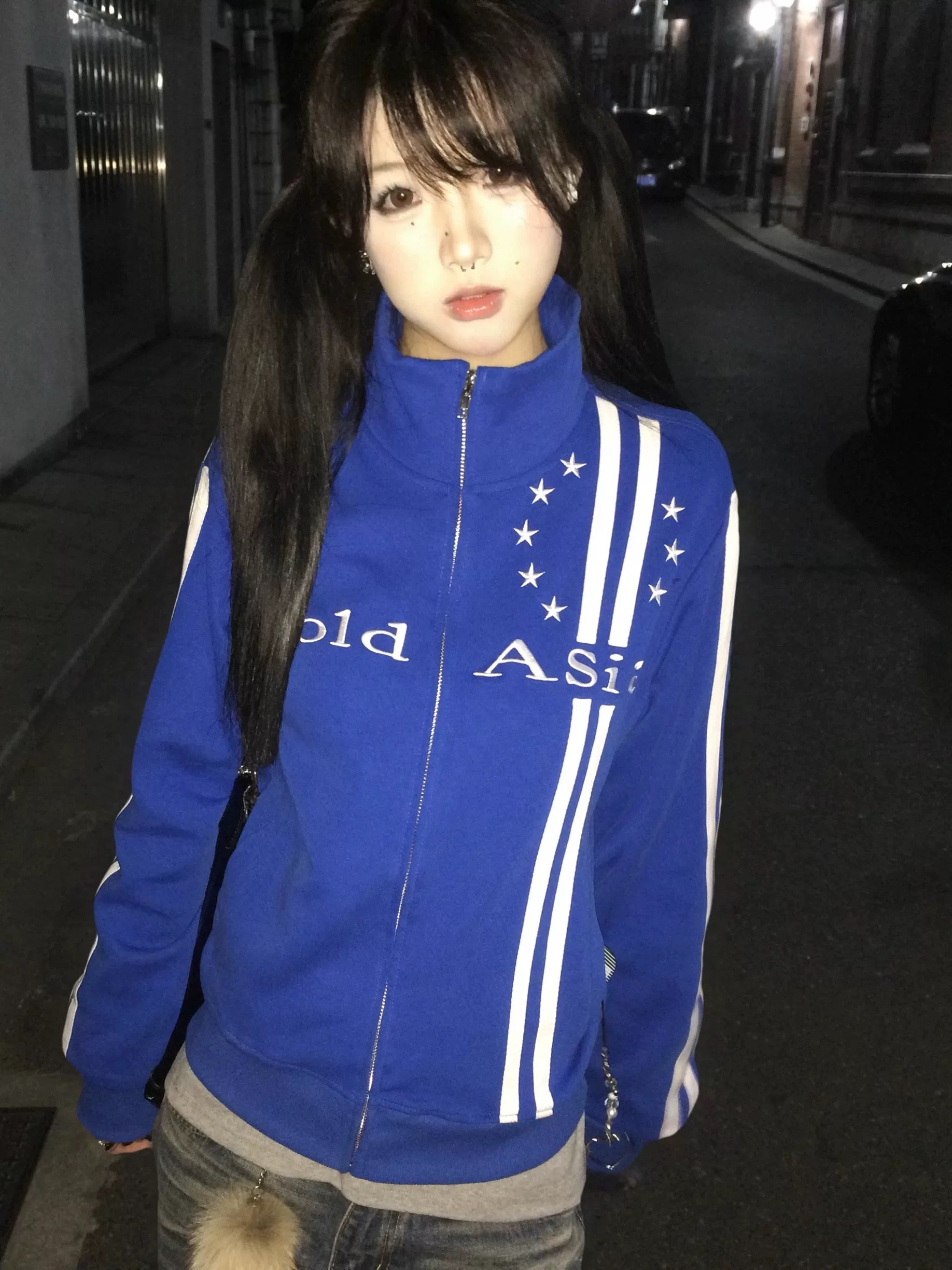ColdAsia Embroidered White Webbing Cropped Jacket