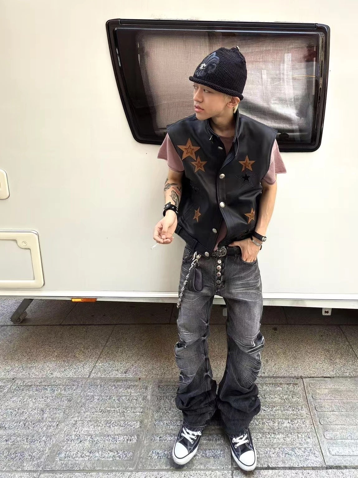 Washing Instructions: Follow standard denim care symbols (wash cold, do not bleach, tumble dry low, etc.)
