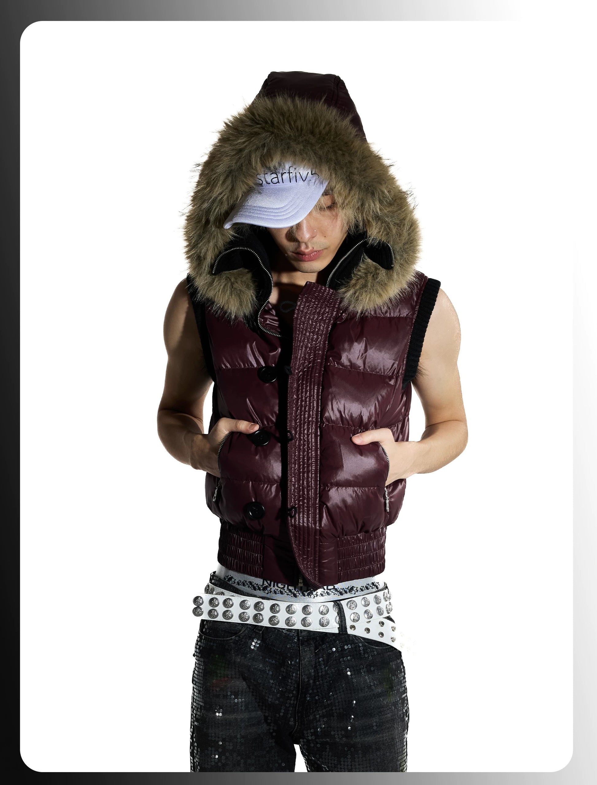 Night Lab 2026 Y2K Purple Fur Collar Puffer Vest - Oversized Vintage Duck Down Gilet